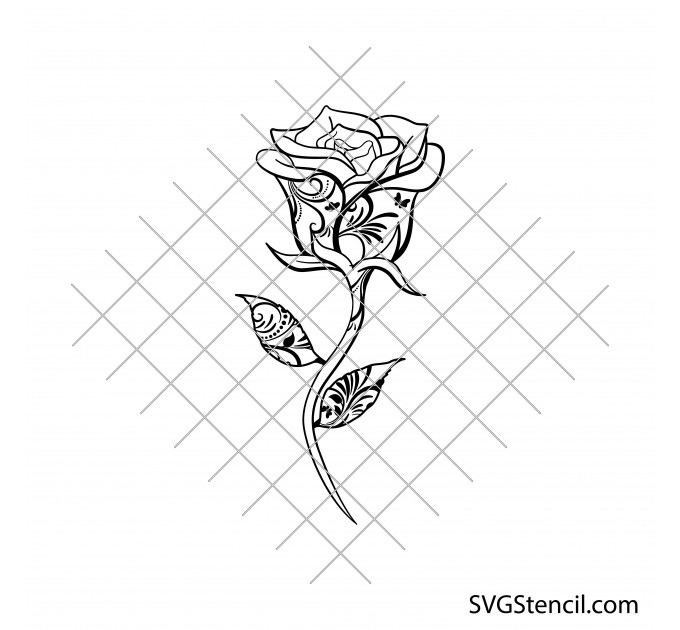 Download a rose design with a svg stem for your next craft project. You can use this digital rose mandala svg image for mugs, t-shirts, tote bags home decor, water bottles, aprons, towels and more. Enchanted rose svg designs cutting file you can use for personal or commercial purposes.