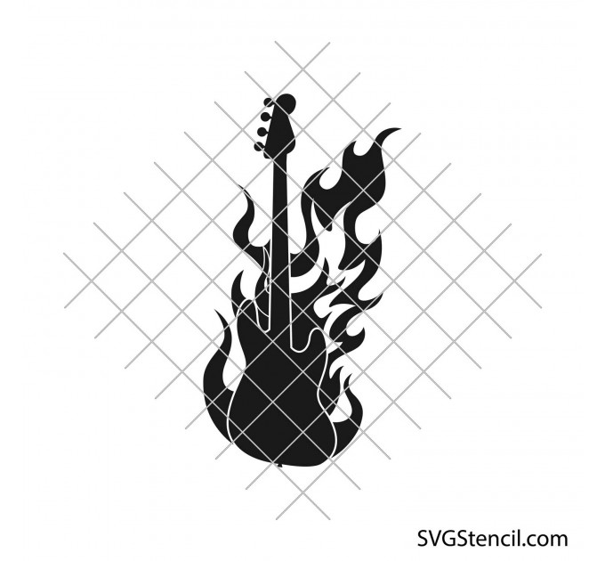 Introducing our "Burning Bass Guitar SVG," a dynamic and electrifying design perfect for SVGStencil Shop! This striking image captures the essence of rock 'n' roll with a bass guitar engulfed in fierce, burning flames. The detailed illustration showcases a bass guitar with strings and frets visibly melting under the intense heat, creating a powerful visual that symbolizes the raw energy and passion of music. Whether you're a musician, a fan, or simply someone who appreciates bold and dramatic artwork, this SVG design will set your creativity on fire.